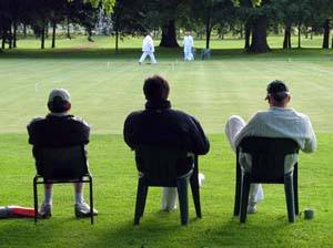 It may have been the B team but it was certainly A class, and the result was rather to be expected. The sun shone and the lawns had held up well to rain the day before. In the doubles Bryan hit the tice but then slightly overdid the take-