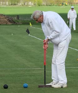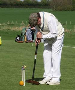 A dry but chilly day greeted the sixteen players. The greatest thanks must go to John Bevington, who mowed the lawns on the Saturday in the rain and sleet. The event was created (and is normally organised and managed) by Terrey Sparks. He is recovering from a heart valve operation, so I found myself in charge and making up the numbers