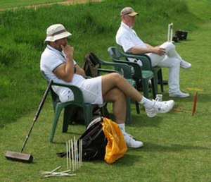 There was a full complement of 16 for this event, including two new faces: Bill Humphries visiting from Australia, who was playing at a number of events during his stay, and Lars Boman for whom this was his first experience of proper croquet, his previous experience being of the Finnish version which by all accounts is a bit more rustic. Lars was allotted a provisional handicap of 20 and managed three wins before being having his handicap set at 18 before his last game against Peter Aspinall, which he lost -