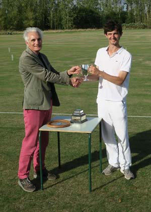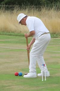 eorge Collin acted as manager and ROT, ably supported by club secretary Tim Brewer who looked after the catering and administrative support. The event was played as a five round Swiss, full bisque base 10 with three hour time limits. The home club had two players in the final: David Woolley who was second overall with four wins and Richard Keighley with one. Three players were making their second consecutive appearance in the final: Phil Nuttall from Bury who had three wins and Julie Sheahan (Merton) and Robert Upton (Dyffryn) with one each. The others were Adrian Apps (Bowdon) with three wins and John Smallbone (Watford) with two. John was unfortunate in that his mallet shaft unaccountably snapped on the first day and he borrowed George’s mallet as being the only one available with the same length head.