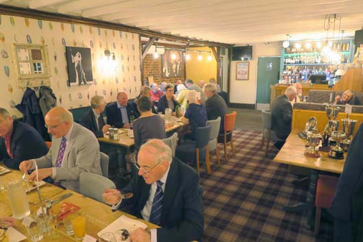 After several years at the Lower Stondon Golf Club, the venue for this year’s dinner moved to The Jolly Coopers in Wardhedges, just down the road from Silsoe. The event was ably organised by Peter Aspinall, and we had a room and a bar to ourselves. 28 people came, and afterwards chairman David Woolley presented the prizes for the various internal club competitions.