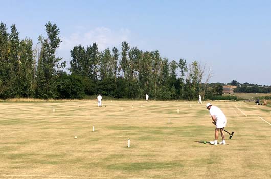 The weather was scorching and the lawns fast, somewhere between 10 and 11 in the morning thanks to John Bevington cutting them at 6.5mm the day before.
