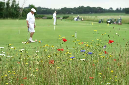 With six minus players, four of handicap 1 and four at 2 and above, there were occasions over the three days when players from the different groups played each other and also when players within the same group played each other twice. The tournament was decided by one of the former: Lionel Tibble v George Collin. George, for rover, had hit both lift shots and pegged Lionel out. He took off to corner 2 leaving a perfect rush and a single ball target. Lionel, near hoop 4 and for 4-