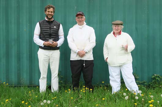 On Sunday Annabel and Ignacio both won their first games and then played each other with Ignacio winning +26, leaving them both on four wins. Annabel then lost a very close game against George Collin when she stuck in rover when trying for enough control to be able to rush partner back to the peg, and Ignacio lost to Eric. Away on lawn four, in the last game to finish, John Bevington and Richard Keighley were both trying to break their ducks, and Richard was the one to succeed.