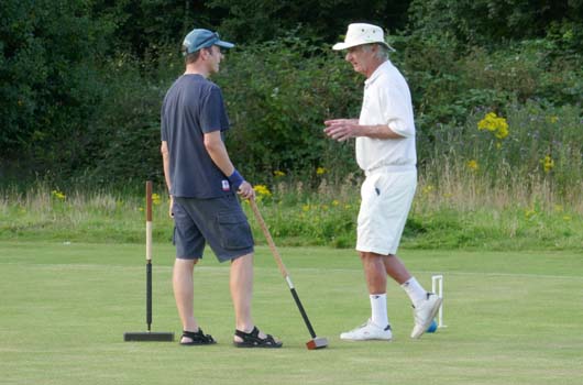 Weather: hot and sunny. Many thanks to George Collin and the rest of the team who put in a long shift on Friday to mow and move the lawns, mark the lines and set the hoops, and to David Woolley and John Bevington for catering duties.