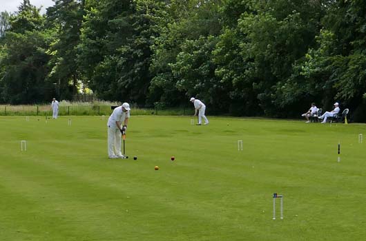 Tim B was struggling out on lawn 4 but recovered before eventually losing on time, so it was now 3-2 to Pinchbeck and all depended on Peter and Tim N. Peter finally got home in spite of (I think this is what happened) forgetting a lift and laying up near corner 3! Tim sometimes failed to heed the Walker Brothers advice to make it easy on yourself, but held on to win +1t to give us the match win. Phew!