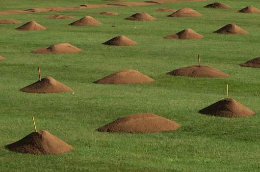 - Plot an equally spaced grid to cover the area so that the number of cells in the grid is equal to the number of barrowloads required, and mark the centre of every other cell with a bisque.