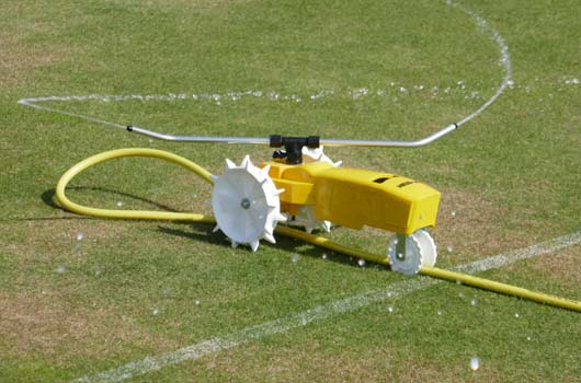 Watering a whole lawn would take three passes and about nine hours. We can only cover lawns 1, 2 and 3 as the hose is not long enough to reach lawn 4, and even if it was the associated pressure drop might be too much. Nevertheless the system is effective and the total outlay was in the order of £1000, so in comparison to other systems it is relatively cheap. Thanks are due to all those who were involved in its acquisition and who continue to work to improve its performance.