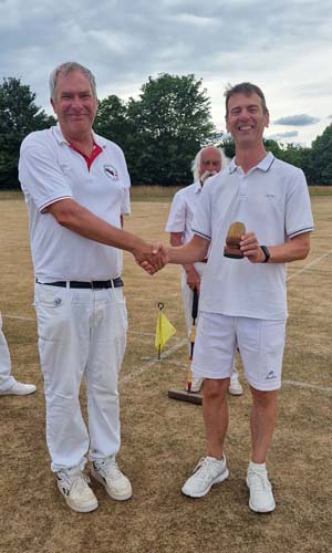 Many thanks to the groundsman George (and his helpers) for the fast though often difficult courts and for hoops that were very fair once approached! Gill Brewer provided excellent lunches with delicious home baked cakes at tea.