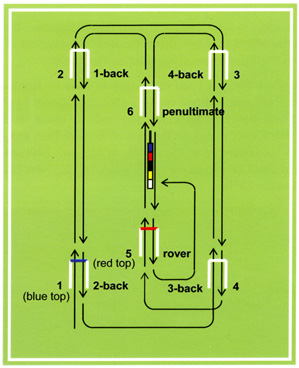 Plan of the course. The rover hoop is named because a ball that has gone through it has no more hoops to go through and can “rove” around the lawn until the game is completed.