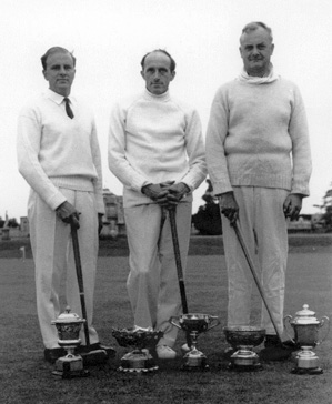 John Wheeler, Vic Rees and Harry Green with trophies won at various tournaments in 1967.