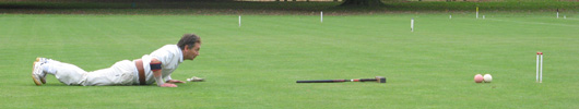 David Goacher (Bristol) lines up a rover peel to complete a triple peel and win the game during the Inter Club final at Wrest Park in 2007.